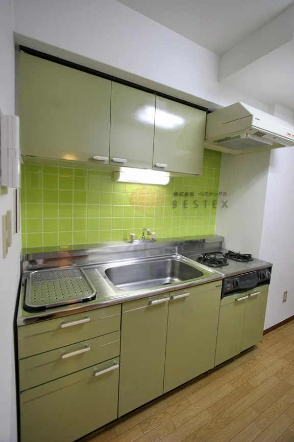 キッチンにはガスコンロ2口が付いており、広さも十分にございますので、お料理好きな方にもおススメ。
