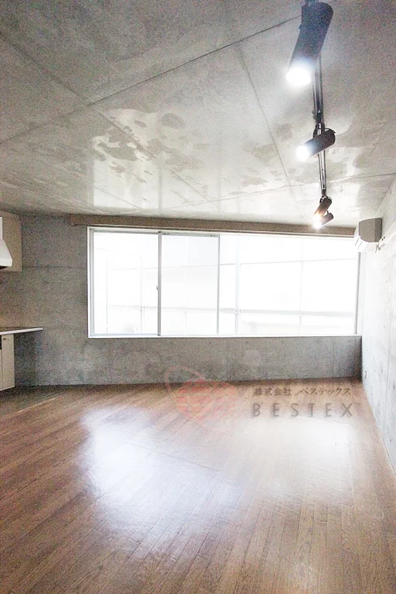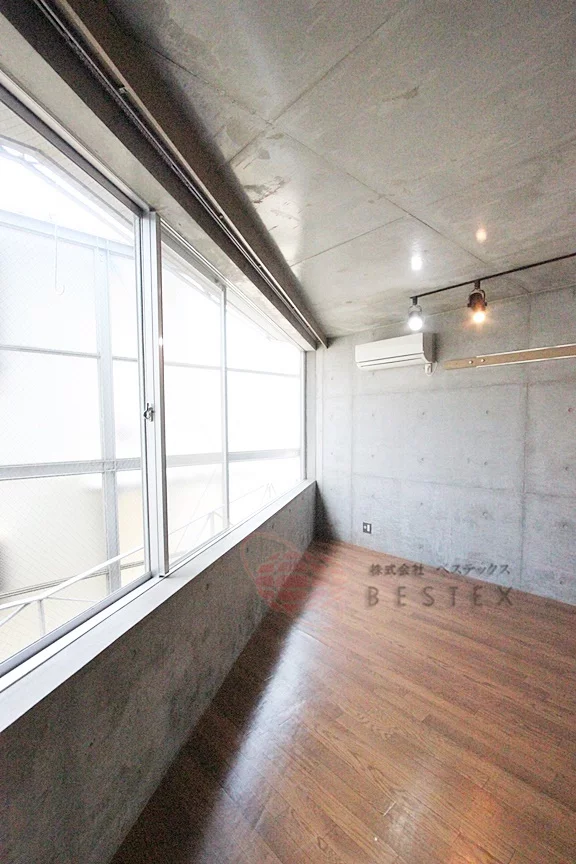 壁・天井はコンクリート打ちっ放しでとってもオシャレ!床はフローリング敷。