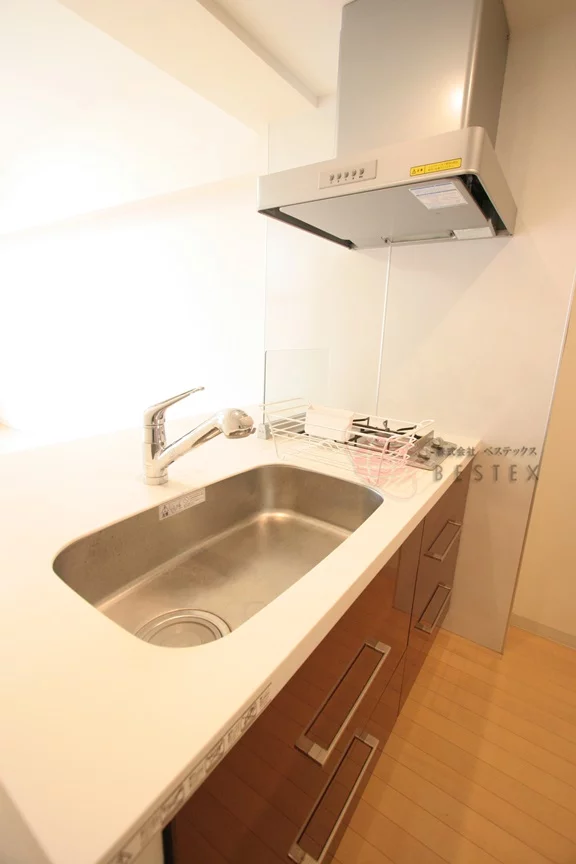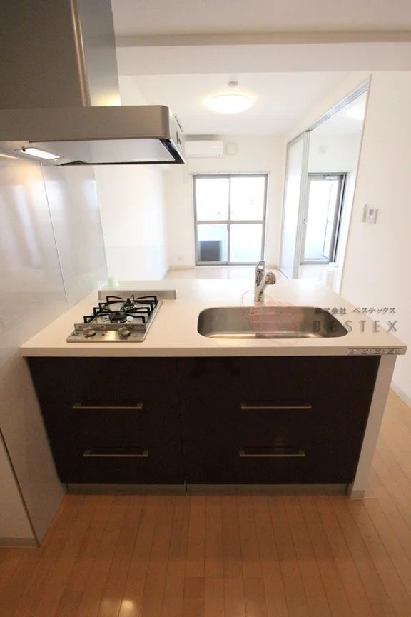 キッチンはカウンターキッチンを採用しており、システムキッチンは2口ガスコンロで効率よく調理ができます。
