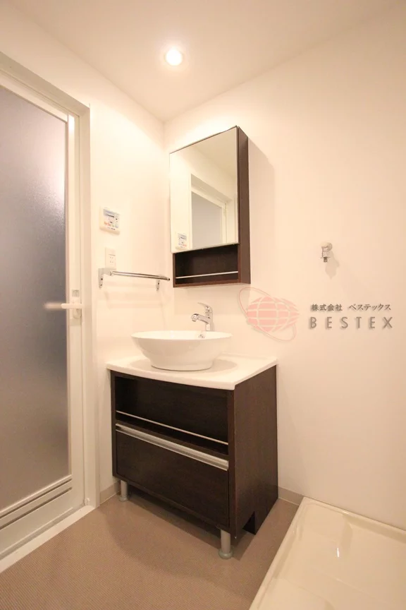 浴室の前には洗面室兼脱衣所があり、室内洗濯機置き場と独立洗面台が完備されております。