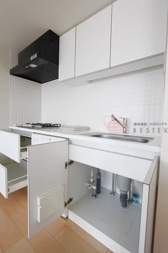 キッチンはホワイトカラーの清潔感あるシステムキッチン♪