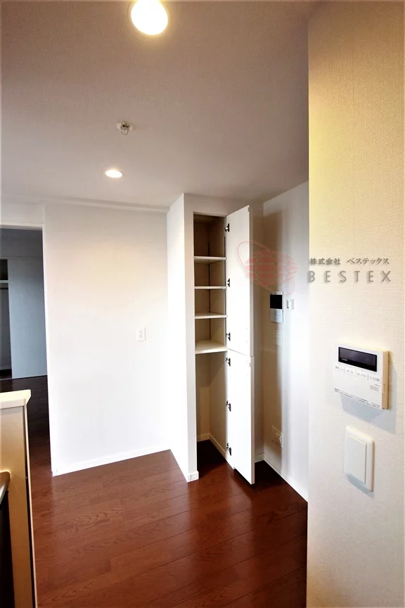 LDKは約12.8帖あり、二面採光で通風も良好!各所に収納も付いているのが便利♪