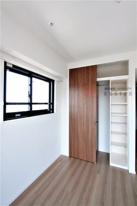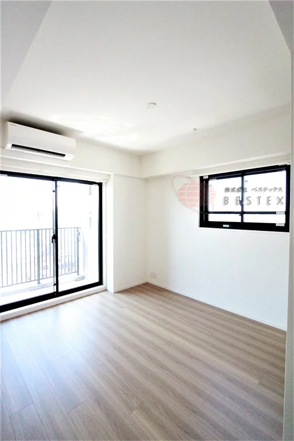 居室は9.0帖、フローリング貼りの洋室。角部屋のため、二面採光になっており風通しも良好です!