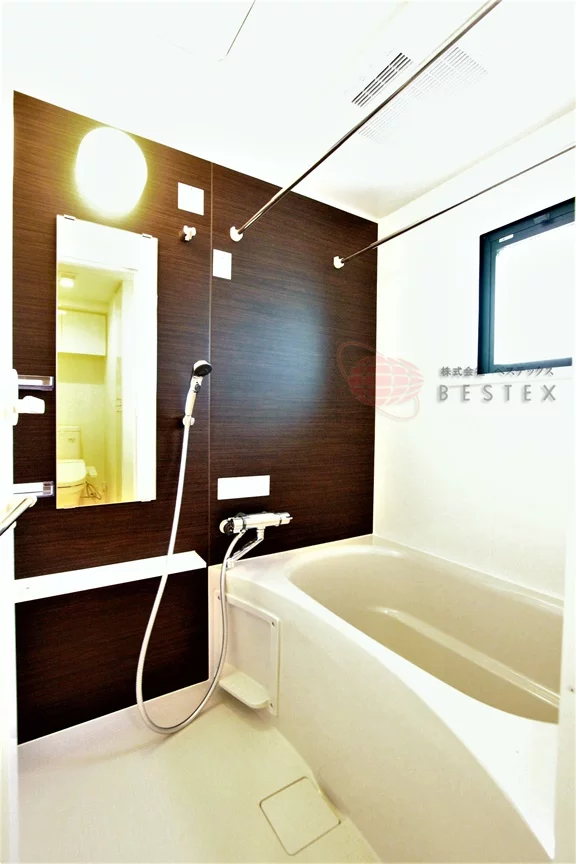 お風呂は1216サイズの大きめのユニットバスで、浴室乾燥機も付いているので部屋干しも楽々♪窓付きなので換気もしやすいです!