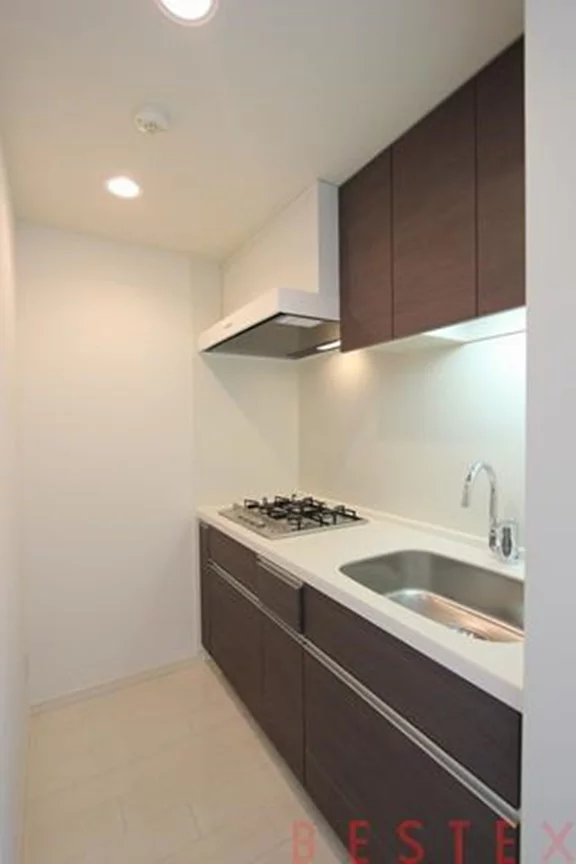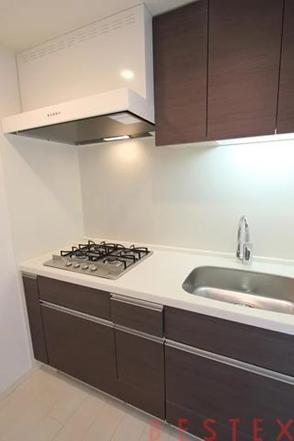 キッチンはリビングダイニングから独立した位置で、2.0帖のスペース。なんと4口のガスコンロが付いたシステムキッチン!収納スペースも豊富に備わっており、お料理のはかどる快適なキッチンです♪