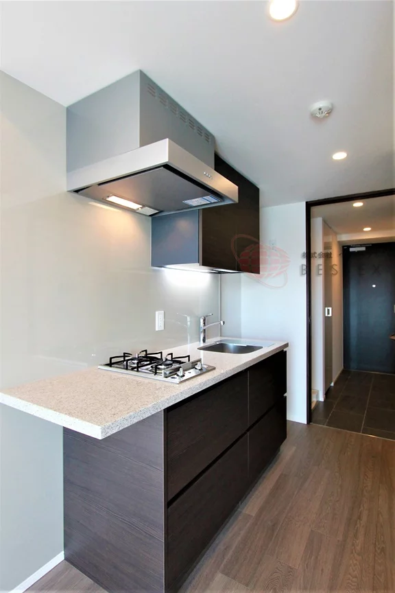 キッチンはガスコンロ2口のシステムキッチンで、キッチン自体の収納も豊富なので一人暮らしの食器類は十分収納可能!
