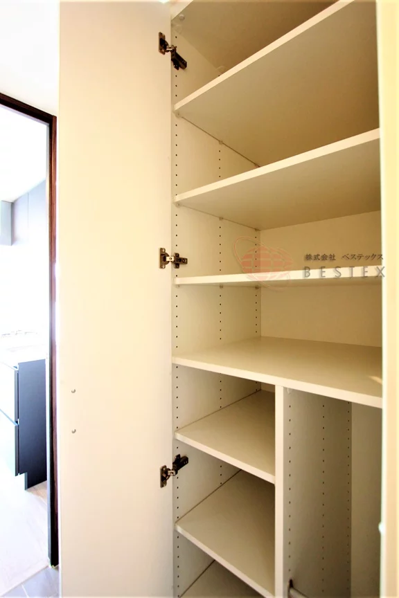 キッチンの向かい側にはウォークインクローゼットがあるので、女性や荷物の多い方にはとても嬉しい仕様!