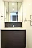 キッチンの向かい側には洗面所とトイレ・浴室があり、洗面所には大きな独立洗面台付き。脱衣スペースも兼ねており、リネン庫付きです!
