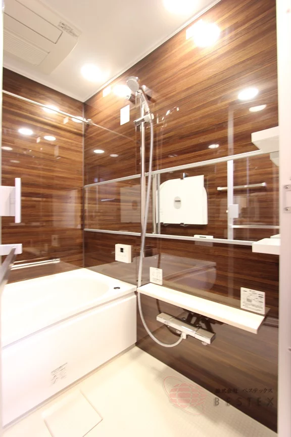 浴室は大きな鏡付きのユニットバスで、追い焚き機能・浴室乾燥機だけでなく、ミストサウナまで完備された高級仕様♪