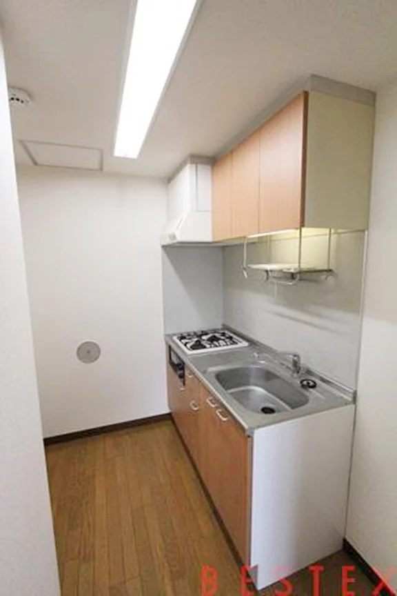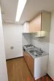 キッチンはガスコンロ2口でお料理もはかどり、冷蔵庫だけでなく食器棚なども置けるスペースがあるので、キッチンスペースを使いやすくレイアウトも可能!
