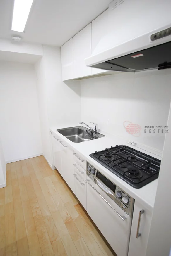 キッチンは3口ガスコンロが備わったシステムキッチンになっており、お料理もはかどる充実の内容。