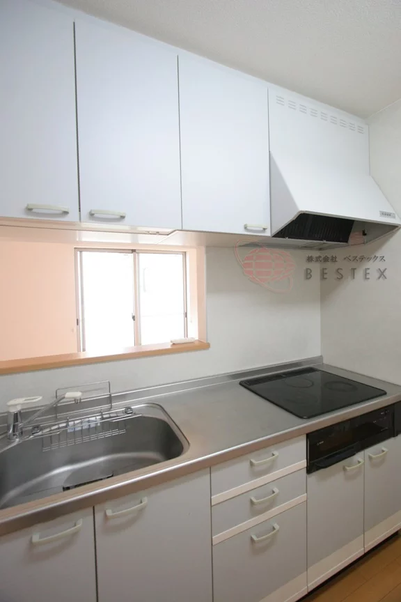 キッチンはIH3口コンロのシステムキッチンで、お料理後のお掃除も楽々♪キッチンに窓が付いているので換気もしやすいです!