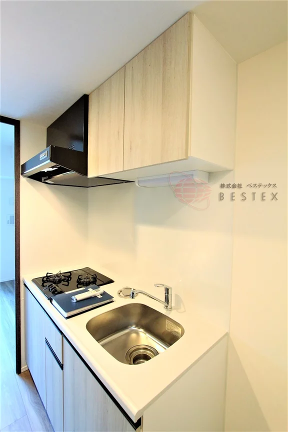 ②キッチンにはガスコンロ2口設置済み、自炊をする方は要必見!