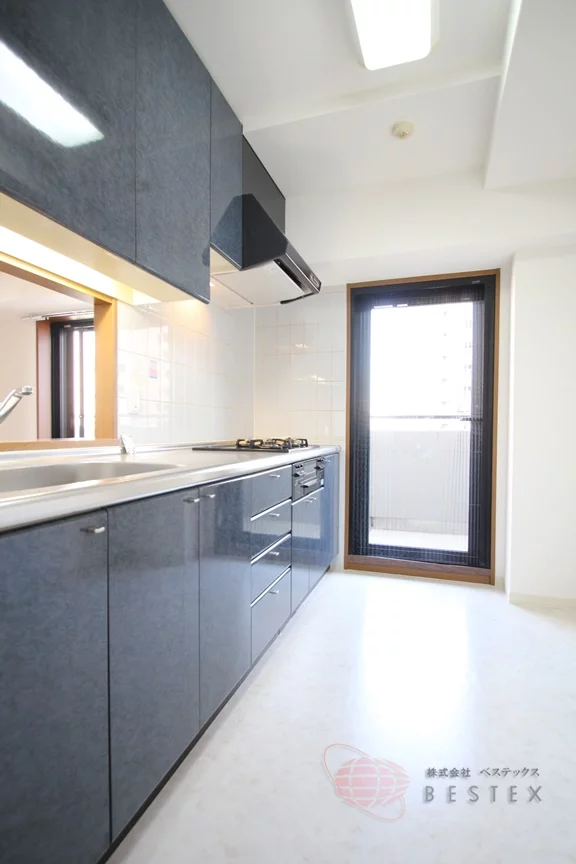 LDKから独立したキッチンは大型のシステムキッチンで、グリル付きのガス3口コンロでお料理も快適♪収納豊富で調理スペースも広く、キッチン内も広々!