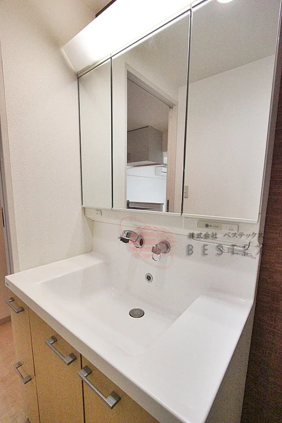 洗面台は嬉しいシャンプードレッサー&三面鏡♪
