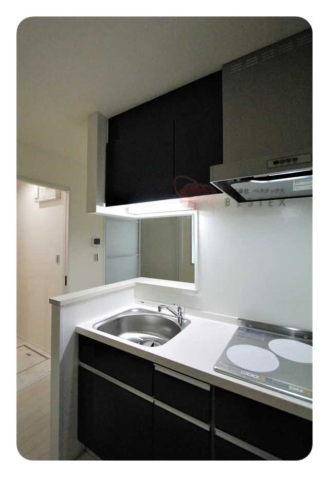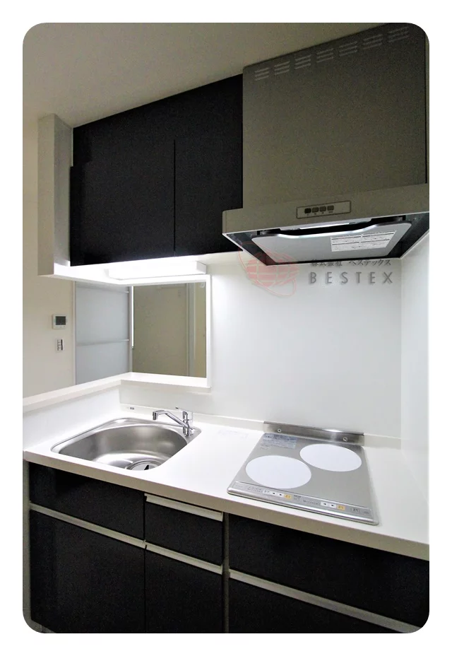 キッチンはIHコンロ2口のシステムキッチンでお料理も快適♪IHコンロなのでお料理後のお掃除もサッと拭くだけで簡単!