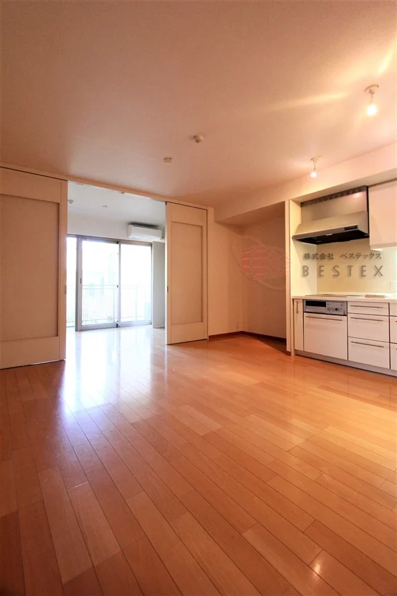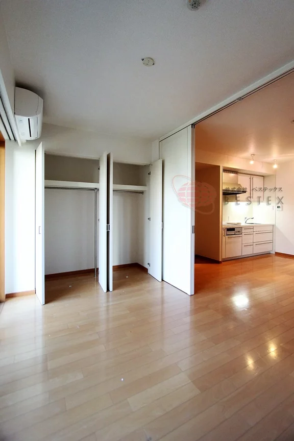 リビングダイニングと引き戸で仕切られた洋室は5.1帖。LDKと洋室はともに東向きのバルコニーに面しているので開放的!洋室には2.7帖の大型ウォークインクローゼットを完備しており収納豊富♪