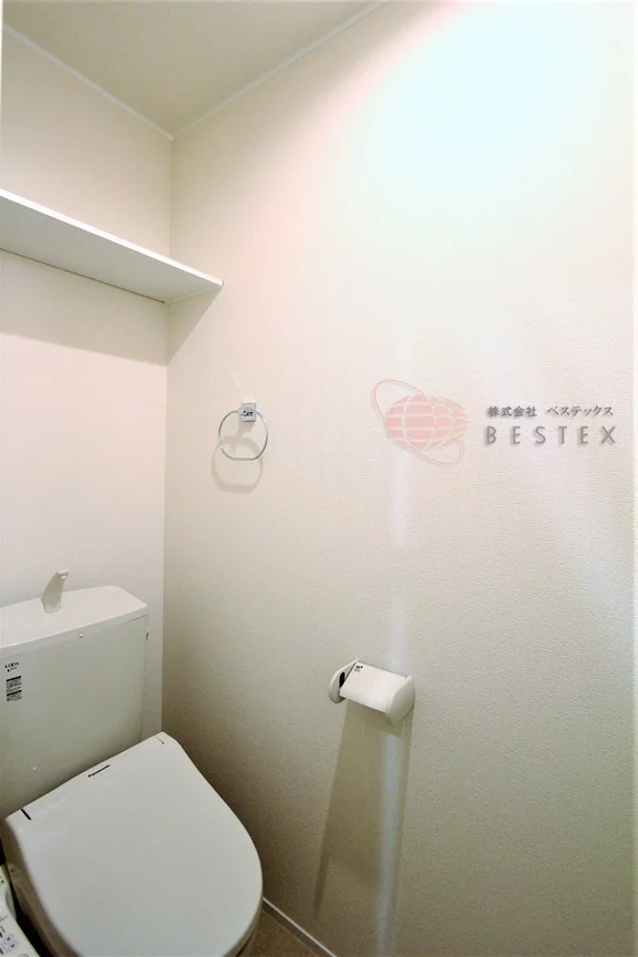 独立洗面台と洗濯機置場のある脱衣洗面所の奥にはトイレがあり、こちらは温水洗浄便座付きで清潔!