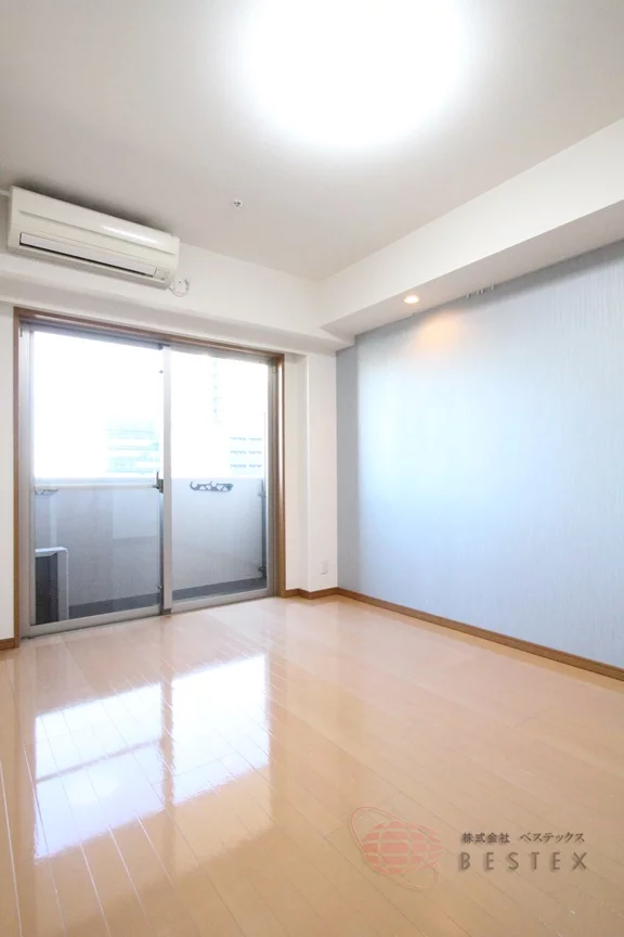 居室は約7.6帖の洋室で、室内には柱なども出ていないので家具類が配置しやすい使いやすい形です!