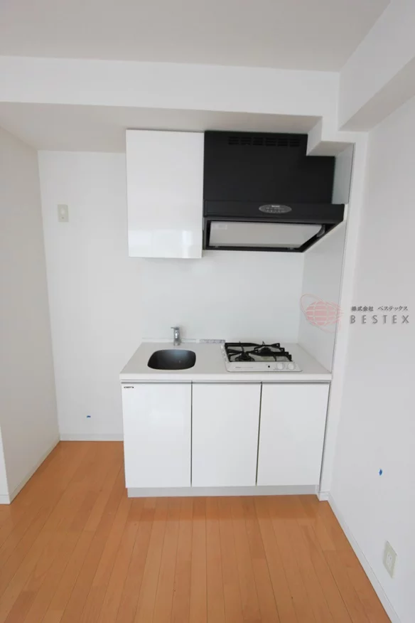 キッチンは2口ガスコンロのシステムキッチン。お料理好きの方にも嬉しい内容で、収納スペースも十分備わっているので食器類もスッキリと片付きます!