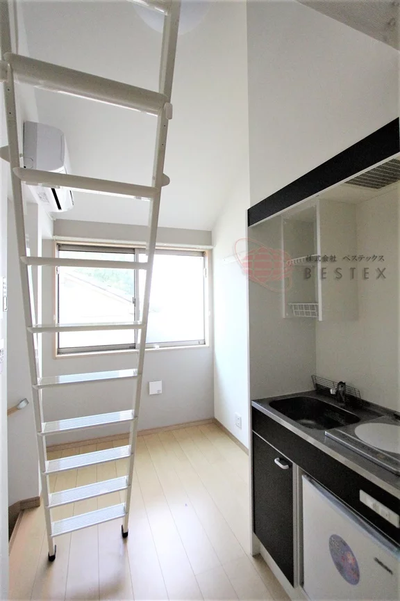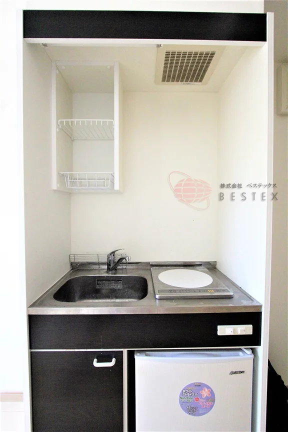 キッチンには1口コンロが備え付けられたミニキッチンを採用しているので、
