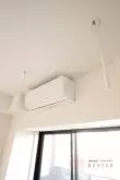 洋室には大きめなクローゼットやエアコンも完備。天井からは室内物干し器具が下がっており、雨の日など洗濯物の部屋干しにも対応可能!