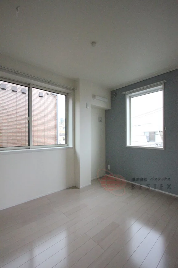 洋室は4.8帖。こちらは綺麗な形でベッドの配置にも困りません!こちらも二面採光なので、室内環境は快適♪