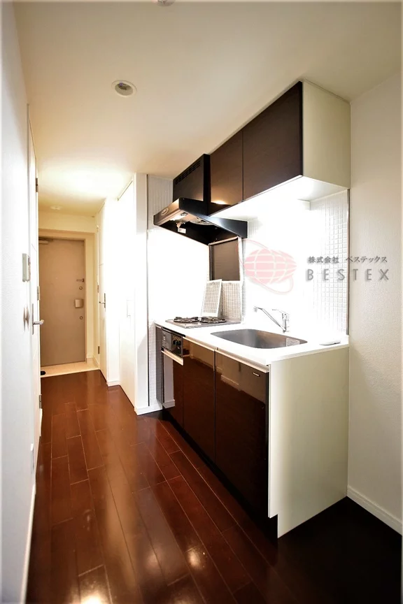 キッチンは2口ガスコンロのシステムキッチンで、お料理もはかどります!システムキッチンには収納も豊富で、食器類もスッキリと片付けられます!