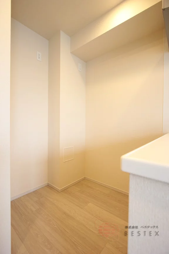 玄関には扉付きの洗濯機置場と、容量の多いシューズボックスが御座います。