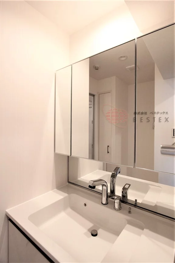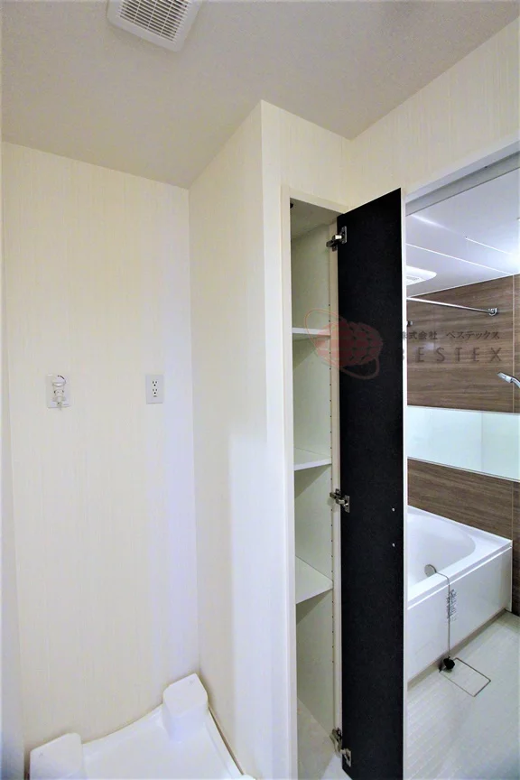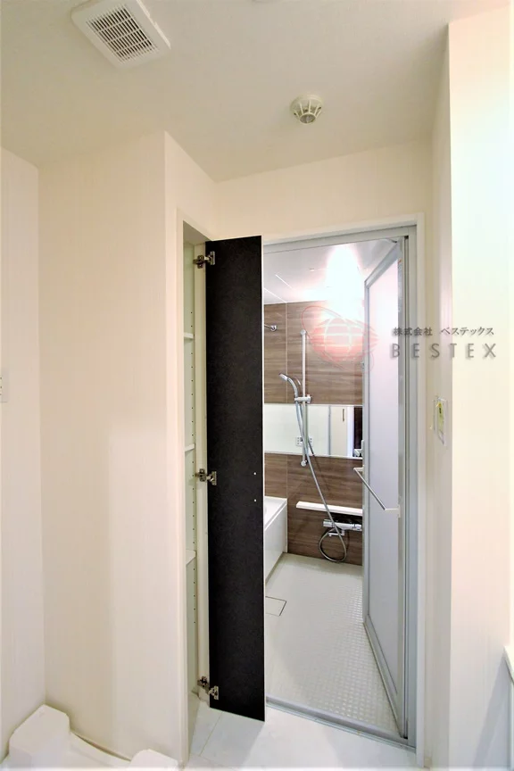 水まわりも充実した仕様で、脱衣所としての広さにも余裕がある洗面室には、独立洗面台と室内洗濯機置場が用意されています。リネン庫の収納なども便利♪