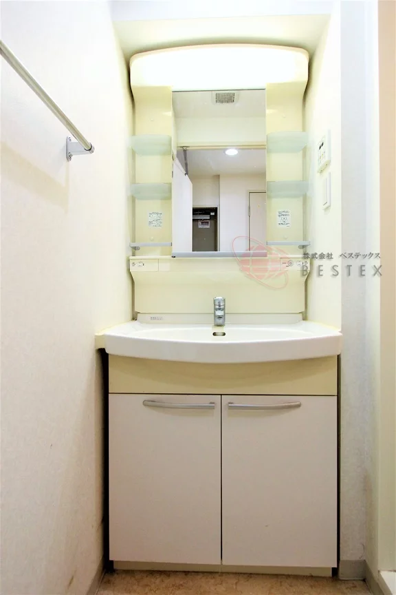 パウダールームには独立洗面台が設置されており、これなら朝の身仕度もスムーズ♪脱衣場を兼ねており、入浴時に廊下で着替える必要ありません。