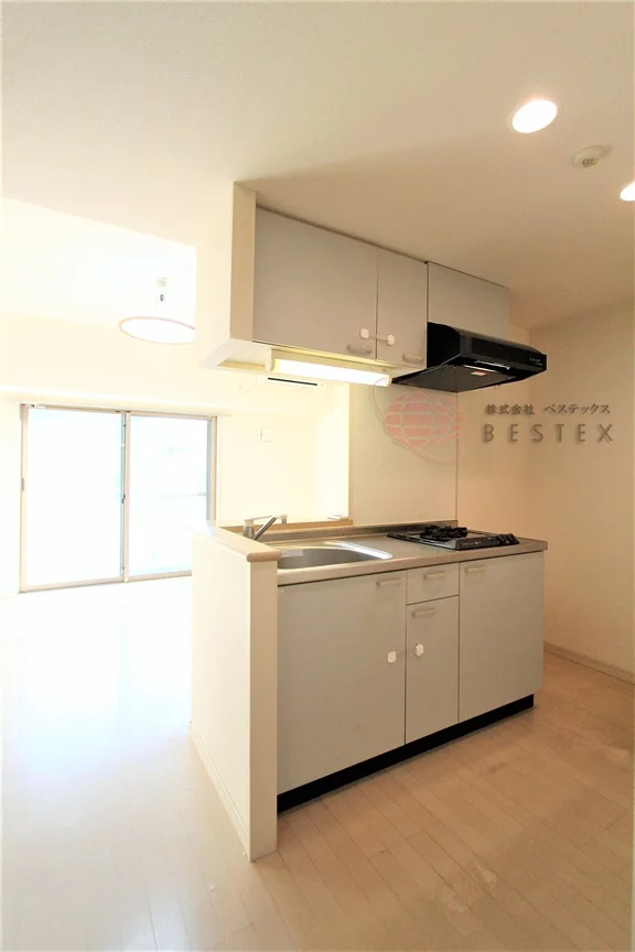 気になる水回りは、2.6帖のシステムキッチンございます。カウンターキッチンタイプになっており、お洒落な印象♪2口ガスコンロつきで、お料理しやすい仕様です。