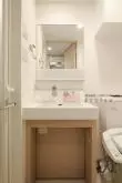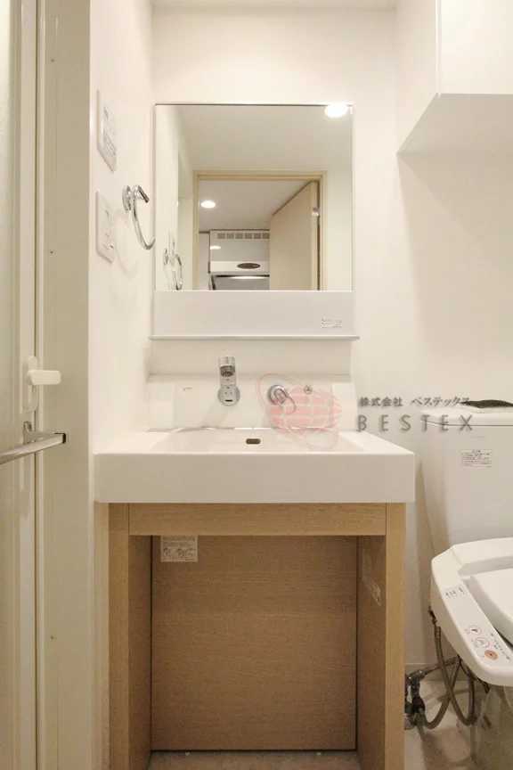 水まわりはキッチンの裏側にあり、洗面室には温水洗浄機能付きのトイレと独立洗面台が御座います!