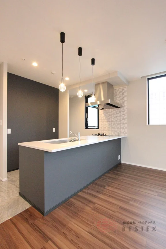キッチンは人気のカウンターキッチンを採用。幅広で調理スペースも広く、収納も豊富!