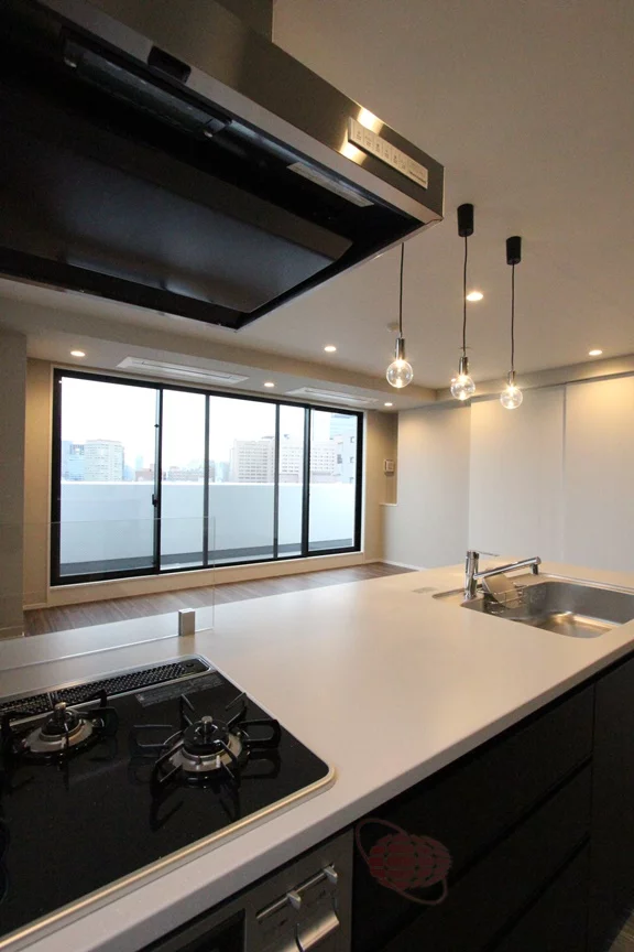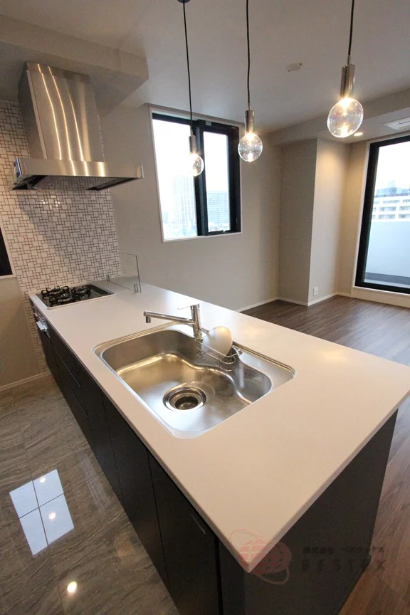 グリル付き3口ガスコンロのシステムキッチンはお料理もはかどり、キッチンには窓も付いているので換気も楽々♪