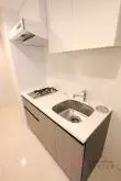 キッチンは2口ガスコンロのシステムキッチンでお料理もはかどり、調理スペースも広く収納も十分!