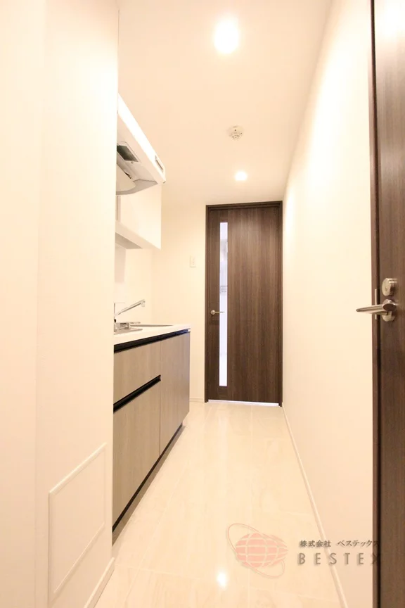 玄関からキッチンまではタイル貼りの床が続いており高級感が感じられます。