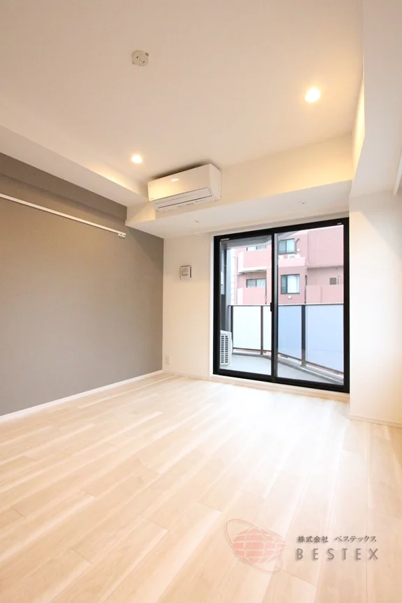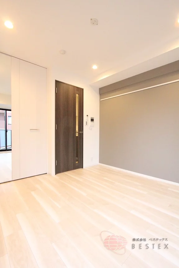 7.7帖の洋室は綺麗な形をしているのでベッドなどの家具が配置しやすくなっています。収納として大型のクローゼットもあるので収納も十分!クローゼットの扉には姿見鏡も付いています。
