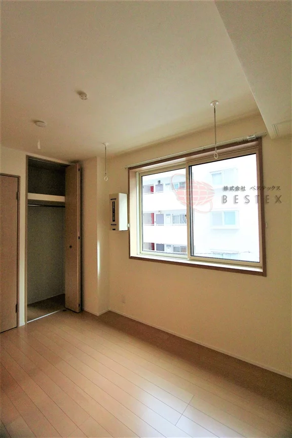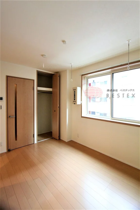 洋室7.5帖、角部屋ですのでプライバシーにも配慮されております♪クローゼットがついているため、洋服や家電など収納ができます。室内を広く活用できそうですね。