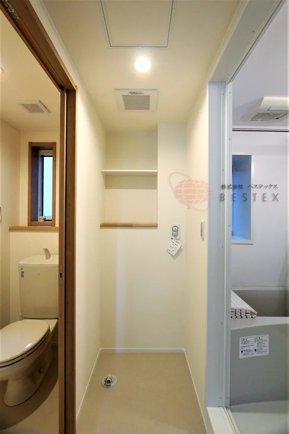 バストイレは完全に別で、清潔感があります。パウダールームには室内洗濯機置き場がありますので、入浴のついでに洗濯機をまわすこともできます。