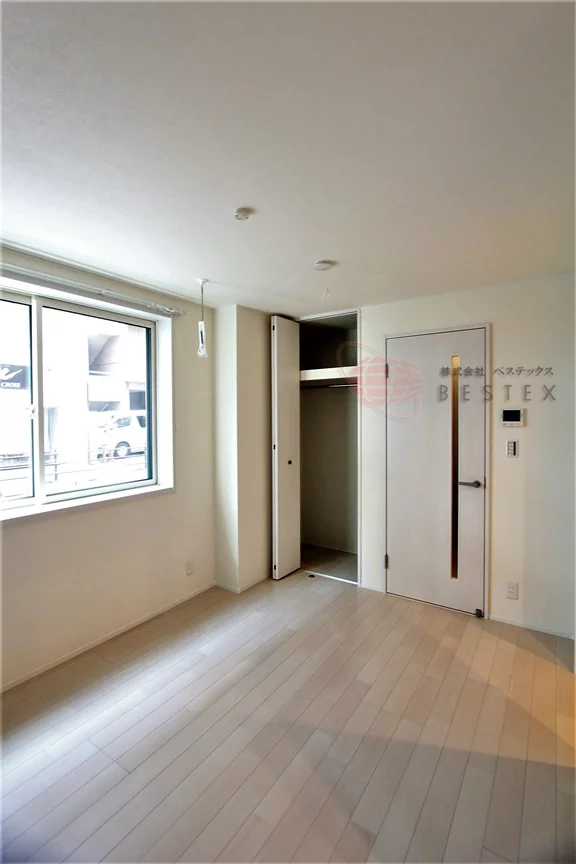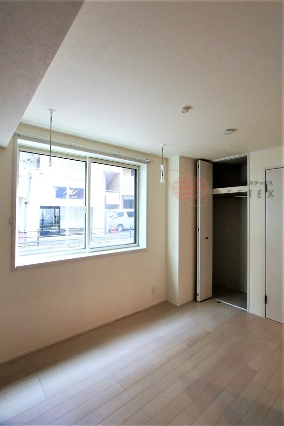 洋室7.5帖、角部屋ですのでプライバシーにも配慮されております♪クローゼットがついているため、洋服や家電など収納ができます。室内を広く活用できそうですね。