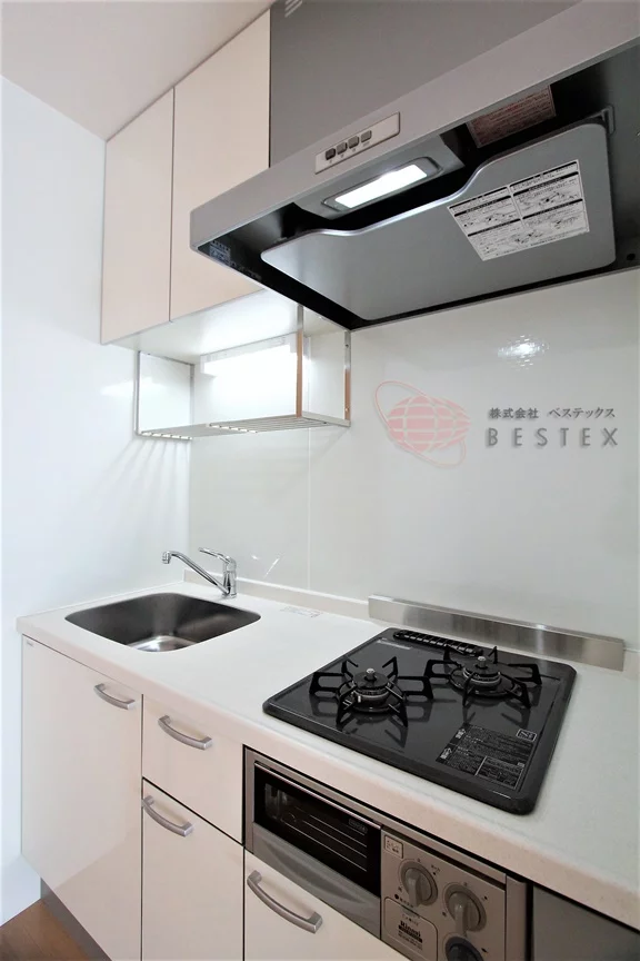 ダイニングキッチンは約7.3帖のゆとりのある空間で、グリル付き2口ガスコンロのシステムキッチンはお料理も快適に行え、冷蔵庫以外に食器棚などを置けるスペースも御座います。