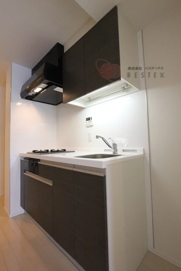 キッチンは人気の2口ガスシステムキッチンとなっております。調理スペースもしっかり確保されているのも嬉しい点です。