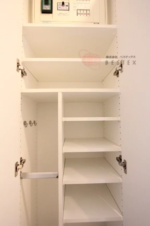 冷蔵庫置場が廊下部分にあるので居室に持っていく必要がなく、その分余裕を持ってスペースを室内の活用出来ます。