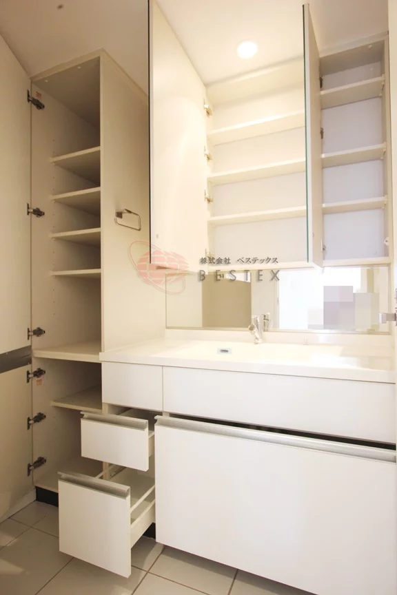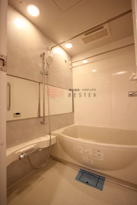 ウォシュレット機能付きトイレ、浴室乾燥機・追い焚き機能付きのお風呂になり、鏡の大きな独立洗面台が完備されております。