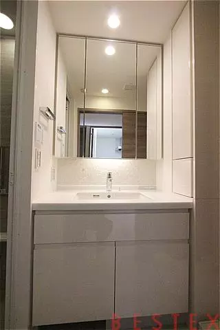 節水タイプのシャワートイレで、トイレ内には手洗い器付き!洗面室にはリネン庫があり収納にも便利♪三面鏡の大きな独立洗面台は使いやすく、収納スペースも豊富!