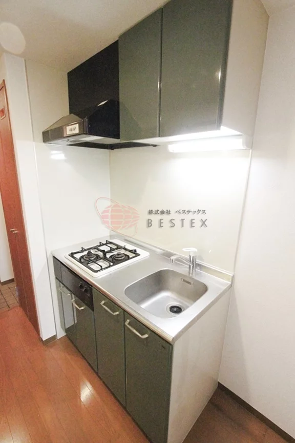 キッチンには料理が好きな方に嬉しいコンロが2口付いたシステムガスキッチンが完備されておりますので、手間なくお料理をお楽しみ頂けます。