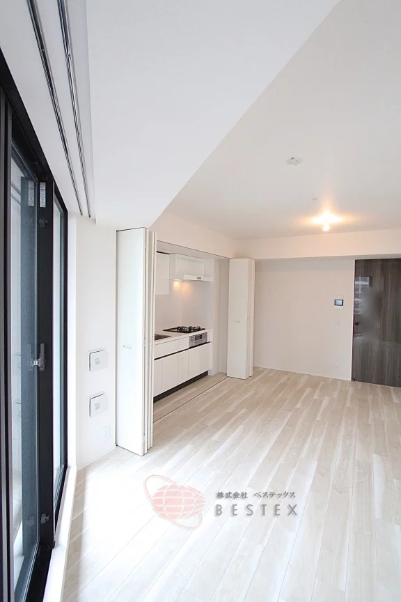 ①居室は15.4帖と広々としており、さらに角部屋の二面採光で開放感抜群!