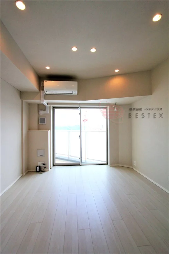 約7.1帖の洋室は梁が少なくスッキリした形。エアコンも完備されております。