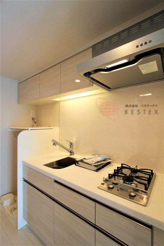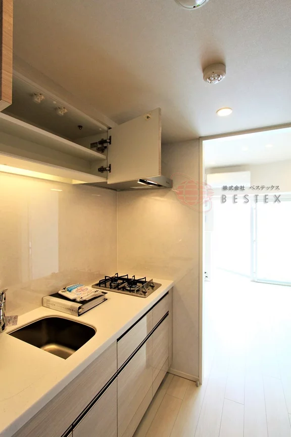 キッチンは2口のシステムガスキッチンで収納も多く、調理スペース・シンクともに広く取られて使い勝手良好♪